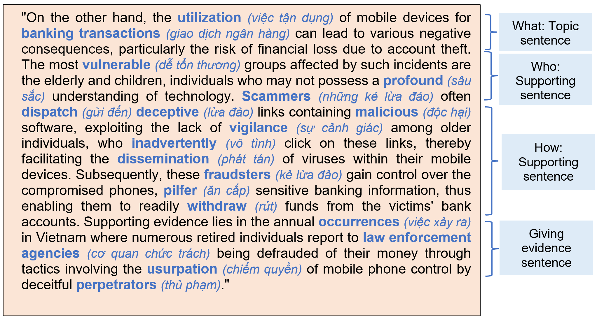 Bạn hãy tham khảo ví dụ một đoạn văn miêu tả “tác hại không mong muốn của giao dịch ngân hàng trên điện thoại” dưới đây để hiểu rõ hơn kỹ thuật 4Ws1H này: