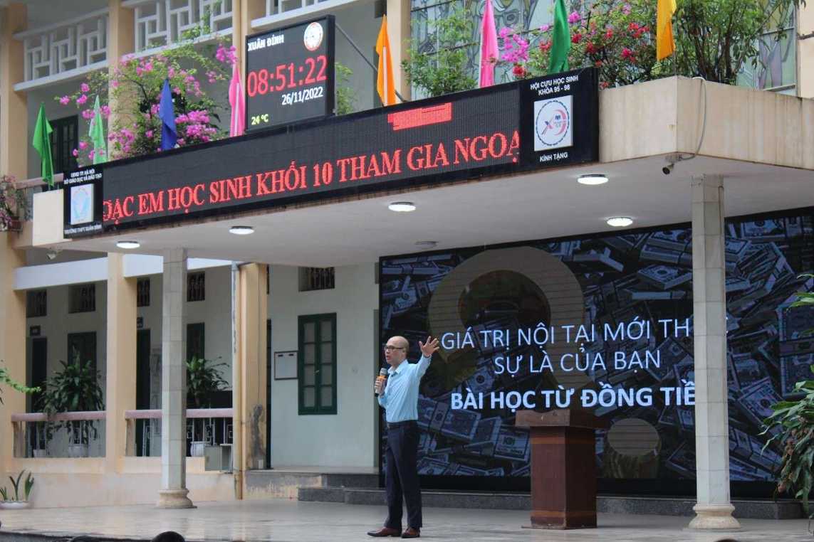 Bài thuyết giảng hướng nghiệp cuốn hút hàng trăm học sinh chăm chú nghe mà quên đi cái se lạnh đang luồn trong không khí, bởi cái nóng hừng hực từ những thông điệp bùng cháy và sức truyền cảm mãnh liệt của diễn giả trong suốt buổi nói chuyện.