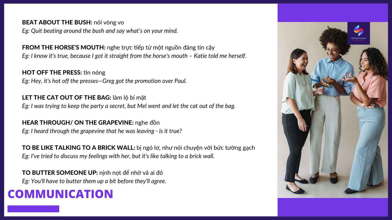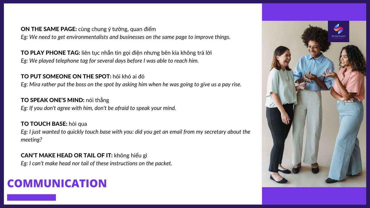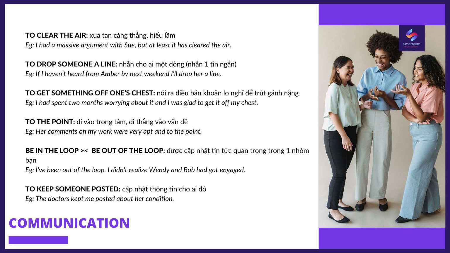 Trụ sở chính: Smartcom English – Tầng 4 nhà 29T2, đường Hoàng Đạo Thúy, khu đô thị Trung Hòa Nhân Chính, quận Cầu Giấy, Hà Nội.