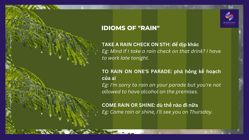 Đấy, nói về mưa đâu cần có từ “rain” nào đâu nhỉ? Mà trong nhiều trường hợp, có dùng từ “rain” lại chưa chắc đã nói về mưa đâu.