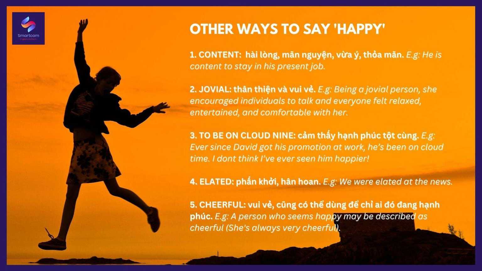 Hôm nay Smartcom tiếp tục giới thiệu với các bạn thêm nhiều cách diễn đạt khác nhau thay thế cho từ HAPPY nhé!