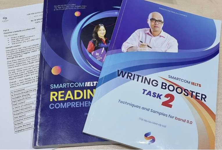 - Giáo trình độc quyền chứa đầy bí quyết: giáo trình và bí quyết làm từng dạng câu hỏi của bài thi IELTS là một trong những bí mật quan trọng nhất giúp sĩ tử IELTS của Smartcom thành công vượt bậc. Smartcom viết bộ giáo trình riêng cho các khóa luyện thi IELTS của mình thay vì dùng các giáo trình đại trà. Chính vì thế, học viên của Smartcom luôn thành công lớn với điểm IELTS cao, tinh thần học tập mạnh mẽ, thời gian học ngắn.