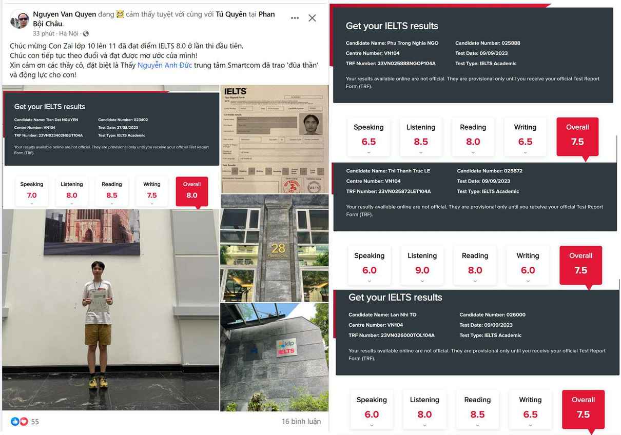 .Lời cảm ơn của phụ huynh và kết quả IELTS 7.5 thành công của học viên