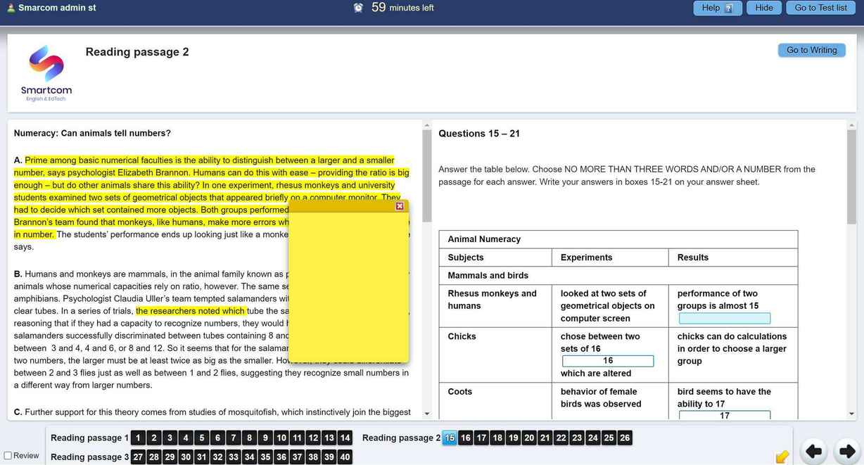 Ảnh: Hệ thống thi thử IELTS của Smartcom